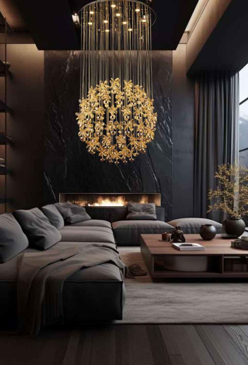 Roof Light features a LED holder type with a size of D800 H2000. Made from high-quality METAL+CRYSTAL, it comes with a beautiful GOLD+AMBER finish.