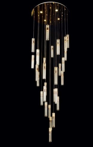Hanging Light features a LED holder type with a size of C 800 x H 4000(MM). Made from high-quality Aluminum + Acrylic, it comes with a beautiful Gold finish.