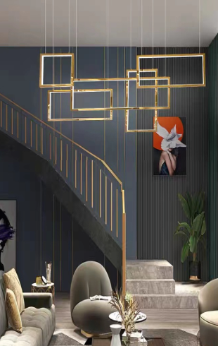 Pendent Light features a LED holder type with a size of 250 x 250 + 500 x 250 + 500 x 250 + 750 x 250 (MM). Made from high-quality Aluminum + Silica , it comes with a beautiful Gold finish.